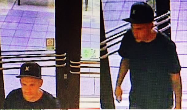 The suspect was described as a 25-year-old white male. He is 5’4″ and has a thin build. He has very tanned skin and dirty blonde colored hair. He was last seen wearing a black and silver snap back ball cap with a “hurley” logo. He also wore dark tennis shoes and dark jeans. The suspect had a skull tattoo on his neck as well as an outline shape of California. He had a full sleeve tattoo on his right arm that was faded. He had one tattoo under his elbow.