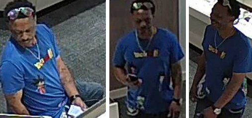 Suspect(s) Description: Male, Black, early to mid-40’s, 5’10”, average build, tattoo on side of face, wearing a blue t-shirt, jeans, beard (dark with some gray)