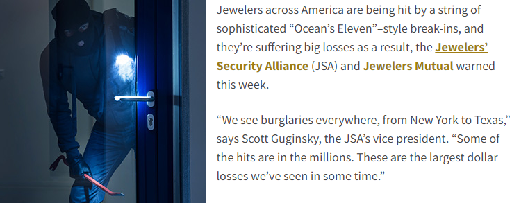 Guginsky notes that these gangs can function only when “jewelers are buying this stolen property.†(Fencing is, of course, a crime.)