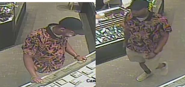 WINSTON -SALEM, NC- On August 24, 2025, the suspect entered the store and told the employee that he was looking for a necklace because his brother just bought one. He said that he was looking for something solid, and that he had a budget of about $8,000. He looked at some different chains, then pointed to one. He said that he wanted to see how it looked on him, and he also wanted to see how it looked on him with a matching charm. The employee told him that he could only have one piece at a time, and he told her that he didn’t know how he could decide unless he could see both pieces on. She still would not let him see both pieces. He eventually looked like he was going to put it on, but he had control of the piece and fled the store. He was seen getting into a newer black SUV that was waiting for him.