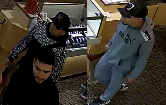 Two men and a woman entered the jewelry store on Thursday and employees approached the individuals to ask if they needed assistance. The three stated they were together looking to purchase an item to give as a gift, she said.