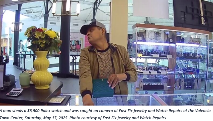 Santa Clarita Valley, CA– A Rolex watch valued at $8,900 was reported stolen from a local business inside the Valencia Town Center mall on Thursday, according to the business owner and officials with the Santa Clarita Valley Sheriff’s Station.