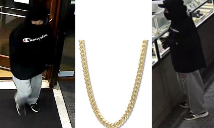 Woodburn, Oregon: On December 02, 2024, it was reported that a grab and run incident occurred at a Jewelry Store. Kay Outlet. A male suspect entered the store and was greeted by an employee. The male mentioned to the team member that he and his girlfriend were in the day before looking at gold chains and he wanted to take pictures of the ones he liked. The male suspect selected a good chain and the employee placed the gold chain on a pad. The male suspect took a picture of the gold chain, grabbed the gold chain, ran and exited the store. Mall security and the Woodburn Police Department were notified and responded. No injuries reported.