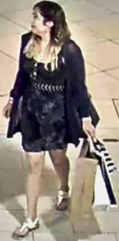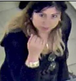 On the date listed above, this suspect and her accomplice featured below used a tool to pry open a showcase.