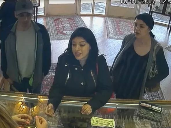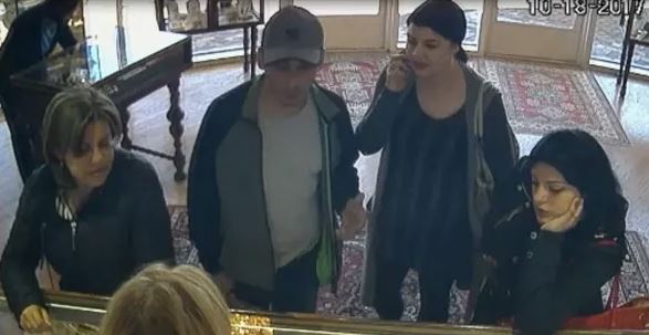 The three women distracted two sales associates by feigning interest in items as the male suspect removed jewelry from behind the counter.