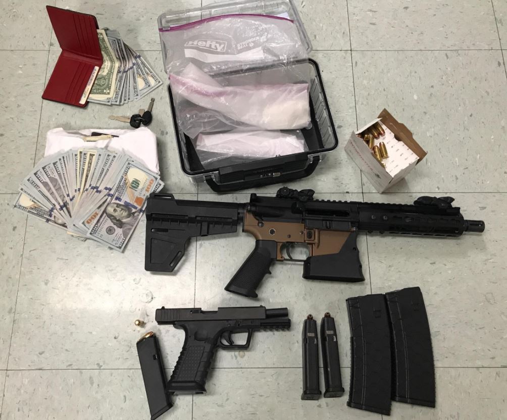 When police searched Aquino’s home, they found the following items; an AR-15 style handgun, ammunition, cash and drugs.